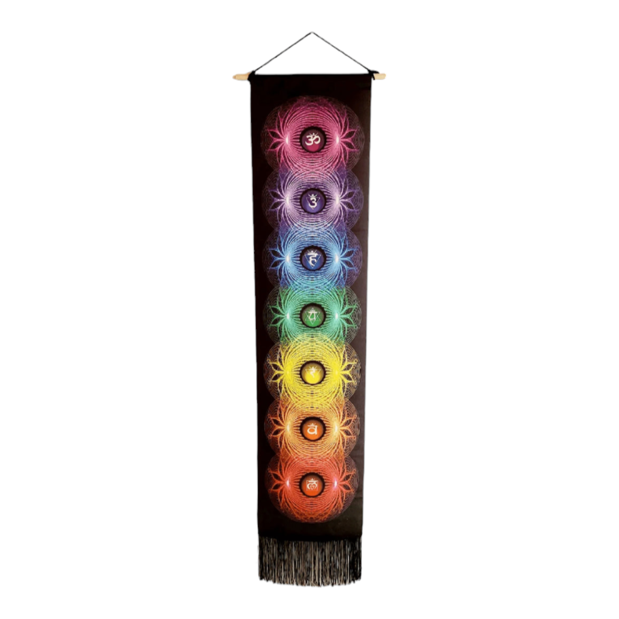Infuse your space with positive energy and vibrant colors using our Linen Banner featuring the 7 Chakra Symbols. Measuring 50 inches long, this meticulously crafted banner adds a touch of spirituality to any room. Each symbol represents a specific energy center, creating a harmonious ambiance that promotes balance, healing, and spiritual growth. Elevate your environment with this captivating and meaningful decoration.