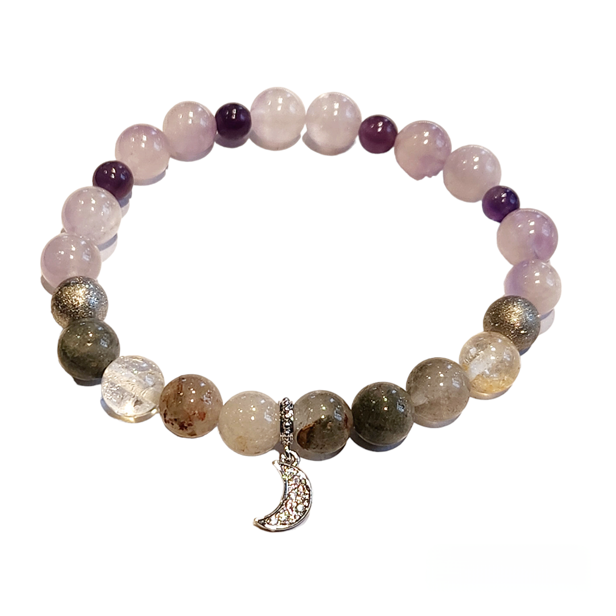 - I Calm my Mind: Amethyst + Rainbow Moonstone | Reduces Stress & Anxiety – Intuition