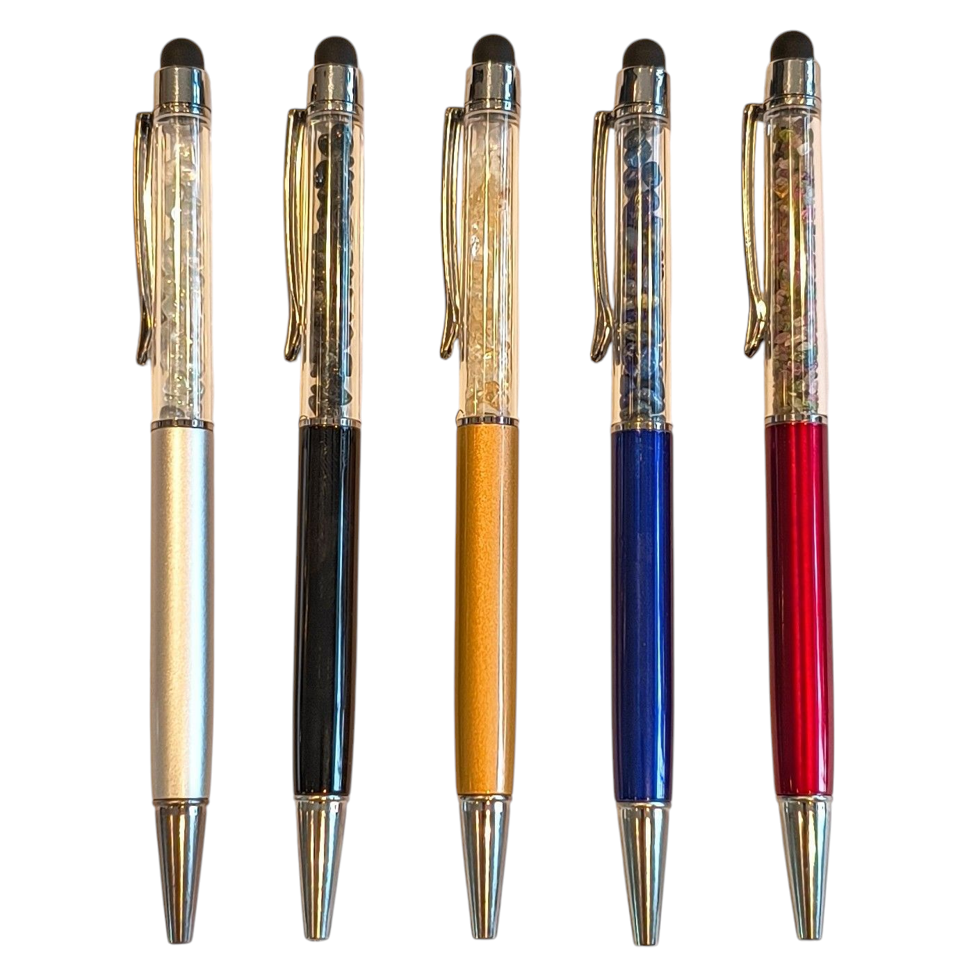 These pens are not only crystal infused but they are also compatible with touch screen devices including iPad, iPhone, and more. With a soft, ultra-responsive rubber tip won't scratch screen.