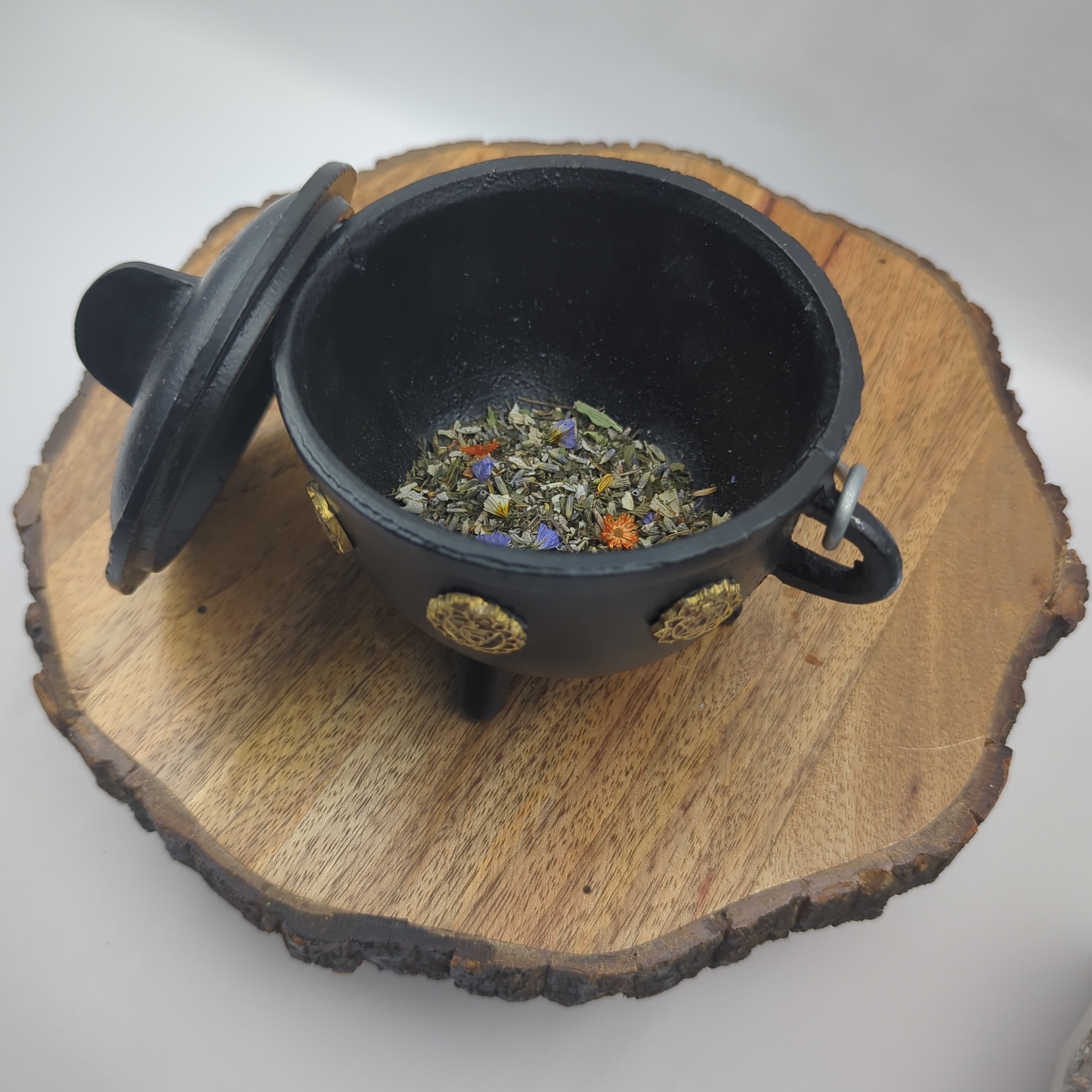 This unique cauldron was crafted for use with all sorts of incense and herbs for burning and smoke cleansing. It also makes a great candle holder for small taper candles. Some people use these cauldrons for storing small stones and other precious items.