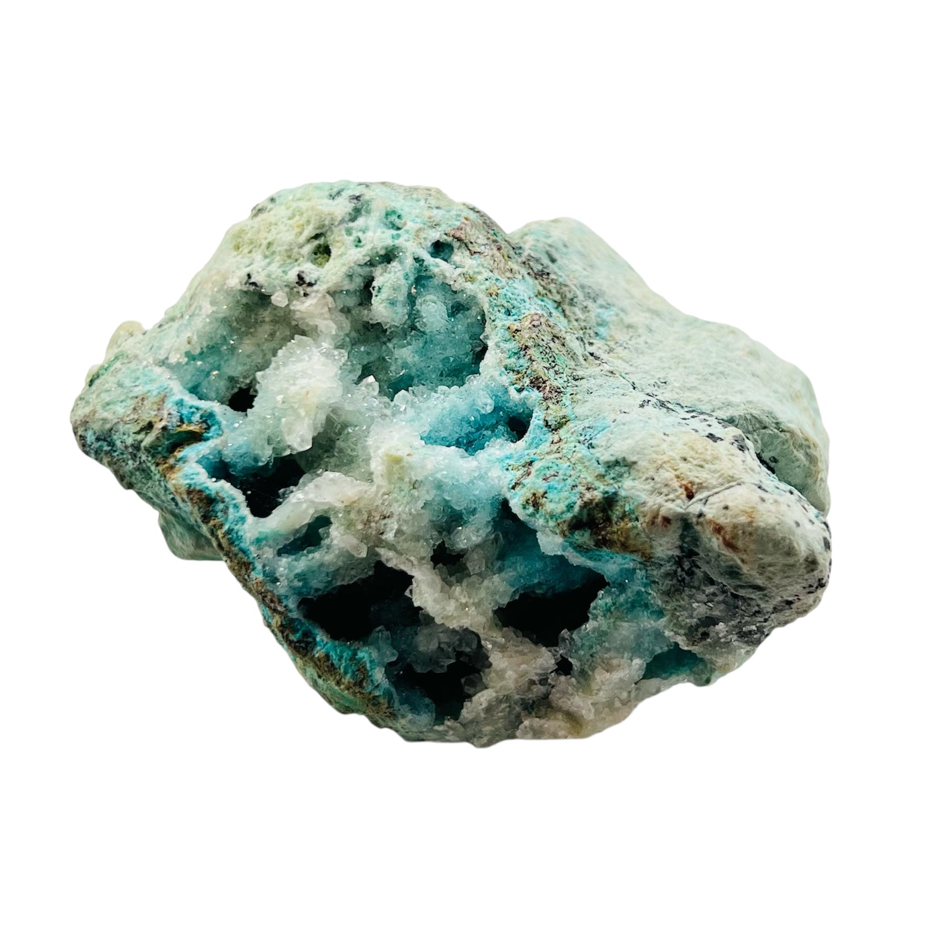 Chrysocolla: Chrysocolla, with associations of tranquility, peace, intuition, patience and unconditional love, is known as a healing stone among Native American cultures where it has been used to strengthen the body's resistance to illness and emotional duress.