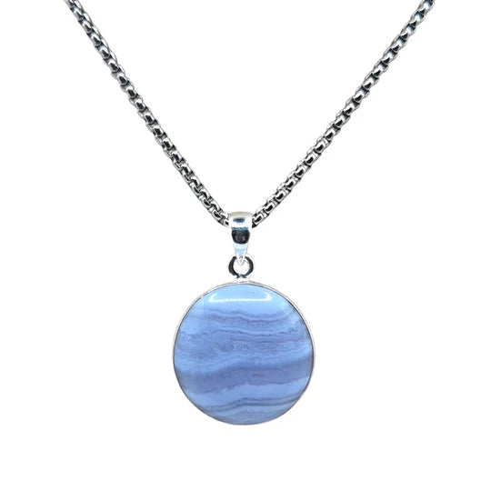 Pendentif en agate dentelle bleue