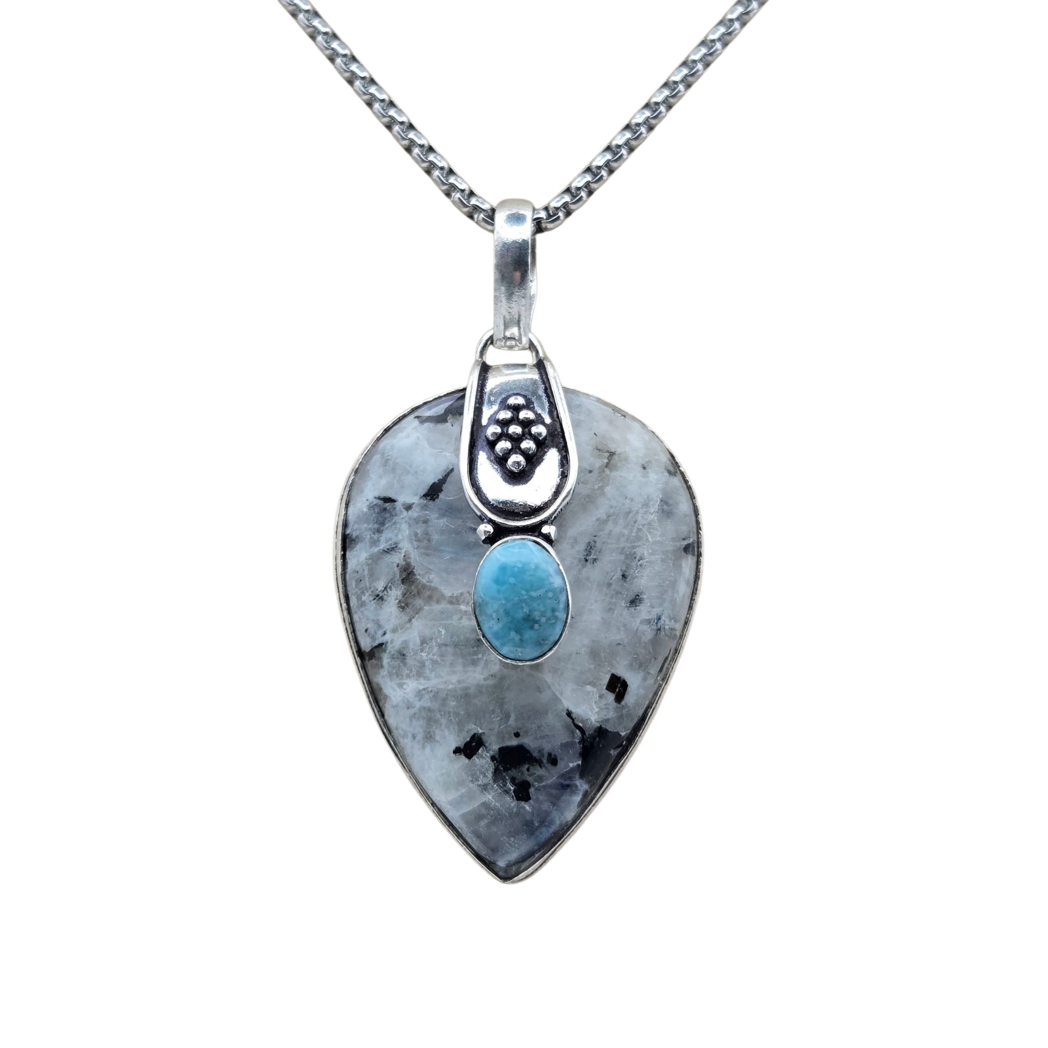 Pendentif en pierre de lune arc-en-ciel et larimar | P504