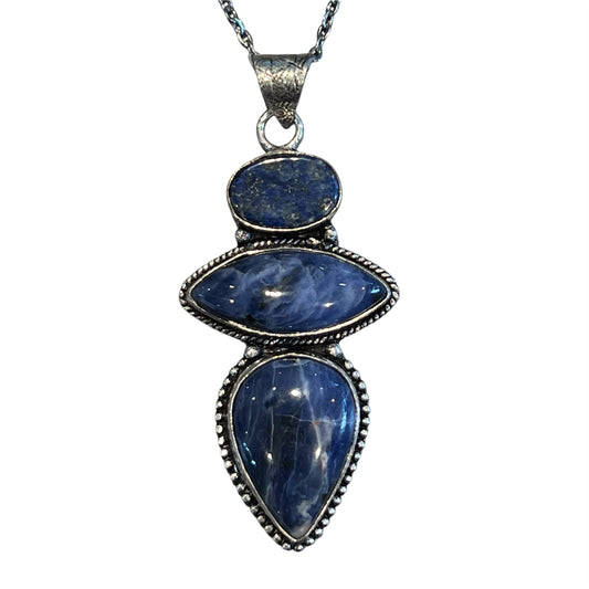 Pendentif en sodalite et lapis-lazuli | P392