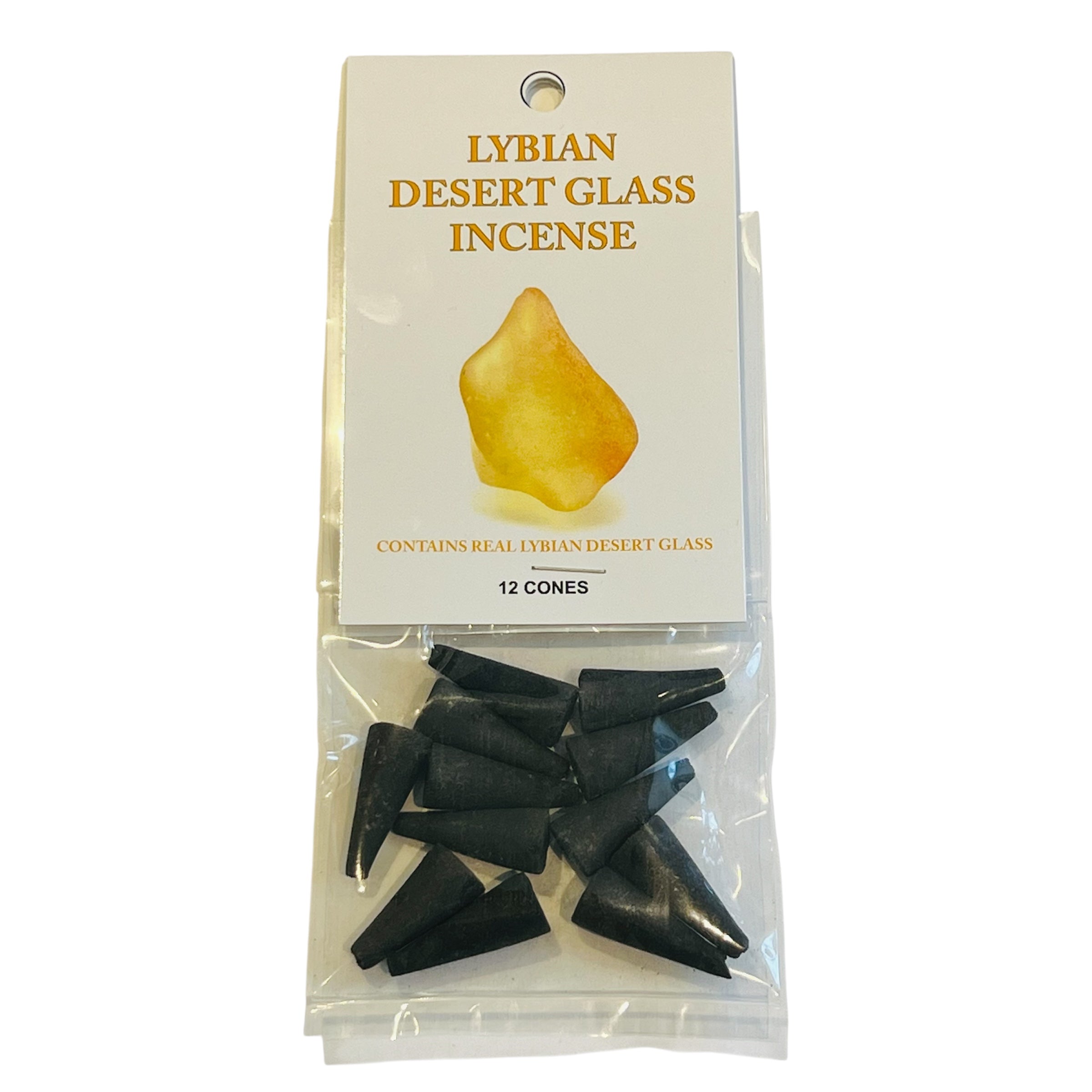 Special blend of essential oils and Real Libyan Desert Glass. Actual glass is added during the application of oils producing a very strong energy output during burning.