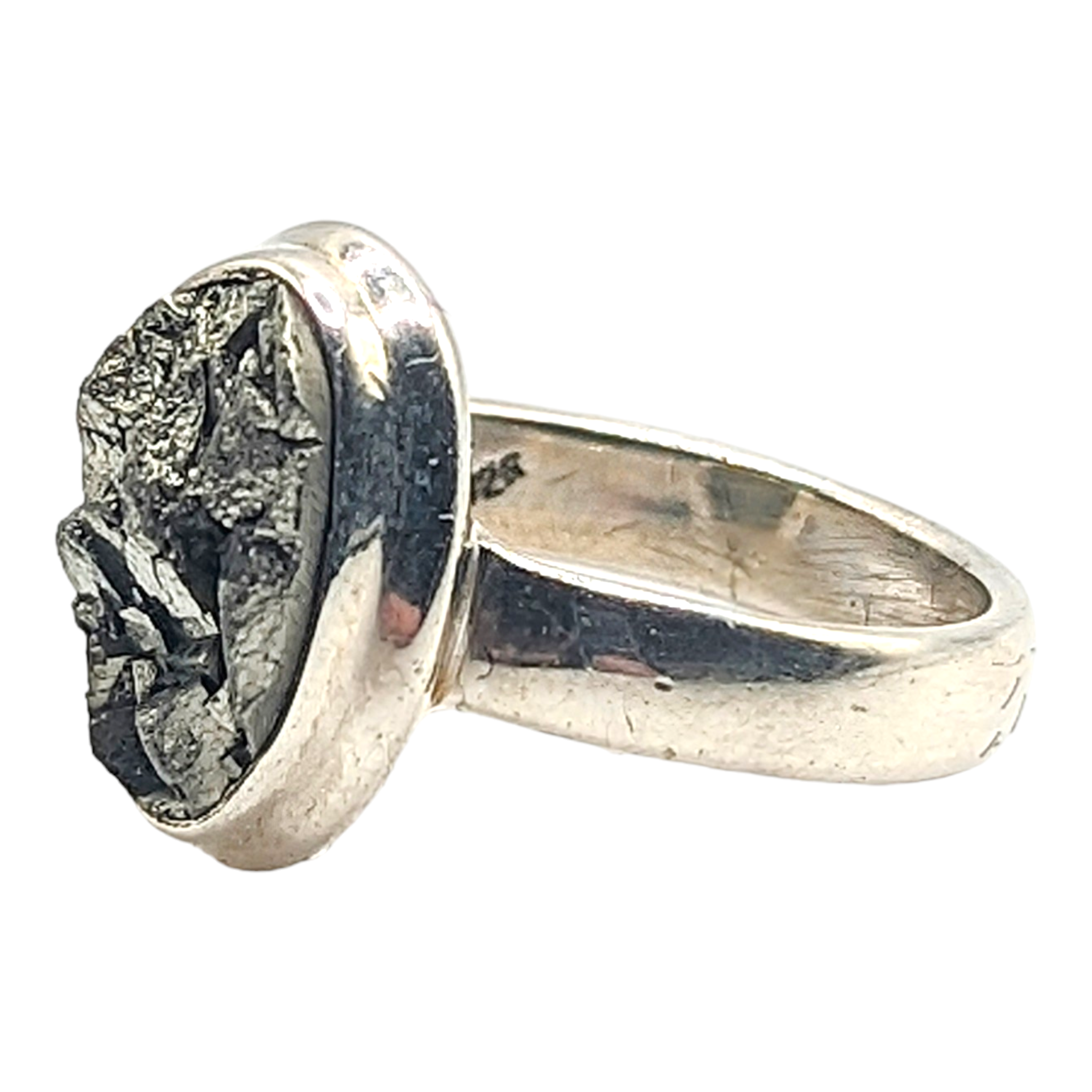 Made of Sterling Silver. You will get the ring you see in the picture.
